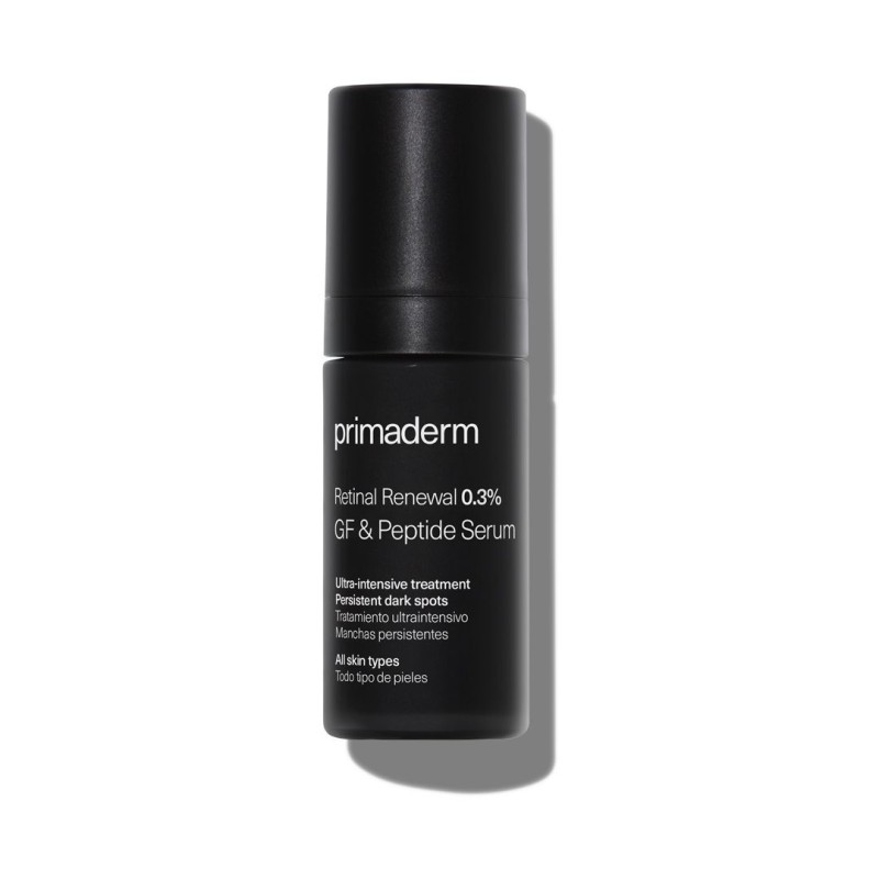 Serum único en el mercado que rejuvenece la piel al mejorar la flacidez, arrugas, manchas y textura. Retinal renewal 0.3% gf&peptide serum modula los mecanismos interrelacionados de protección, renovación y despigmentación como estrategia terapéutica clave en el abordaje del envejecimiento cutáneo avanzado. Formulado con los cuatro activos más potentes: retinal puro encapsulado para una mayor estabilidad y penetración proporcionándole la más alta eficacia antiedad global. Pureoxin™ el factor de crecimiento que participa en el equilibrio interno antioxidante del organismo disminuyendo el inflammaging al neutralizar el estrés oxidativo generado por la radiación ultravioleta y los contaminantes. Dimethylmethoxy chromanol molécula de notoria eficacia neutralizadora de los radicales oxígeno y nitrógeno, causantes del daño celular y deterioro de las estructuras de la dermis. Nonapeptide-1, péptido despigmentante que actúa bloqueando eficazmente la melanogénesis ya que inhibe la tirosinasa y la síntesis de melanina. Revierte los efectos de acumulación pigmentaria propios del fotoenvejecimiento.